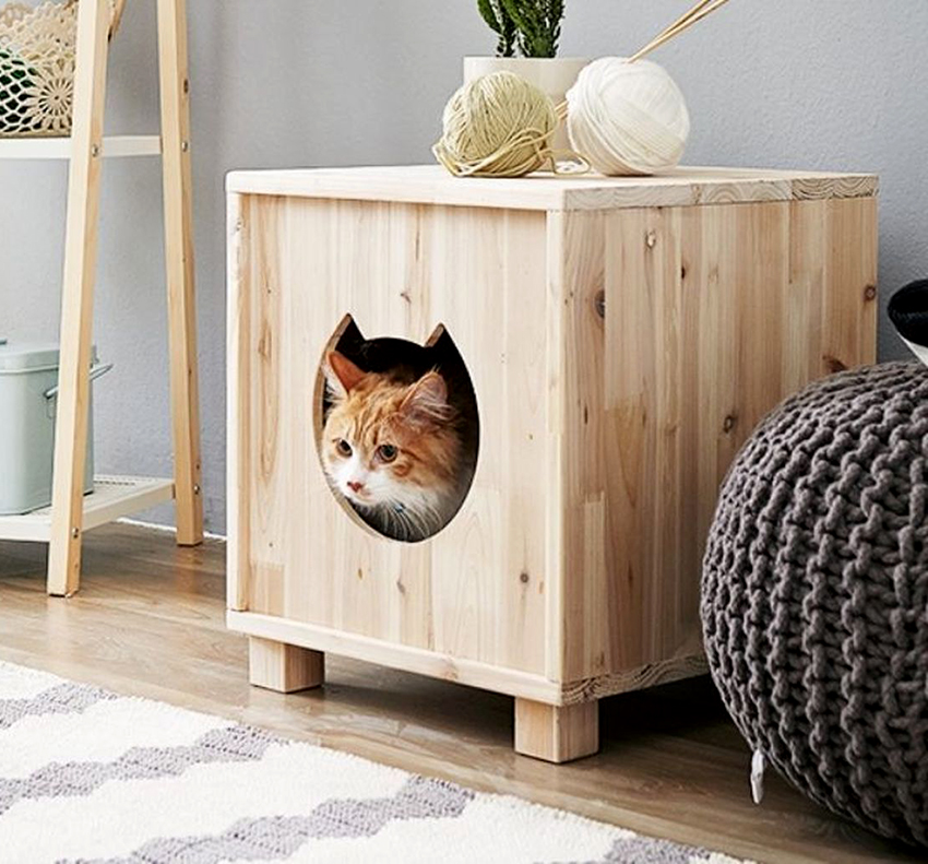 The main advantages of making a do-it-yourself toilet house for a cat: