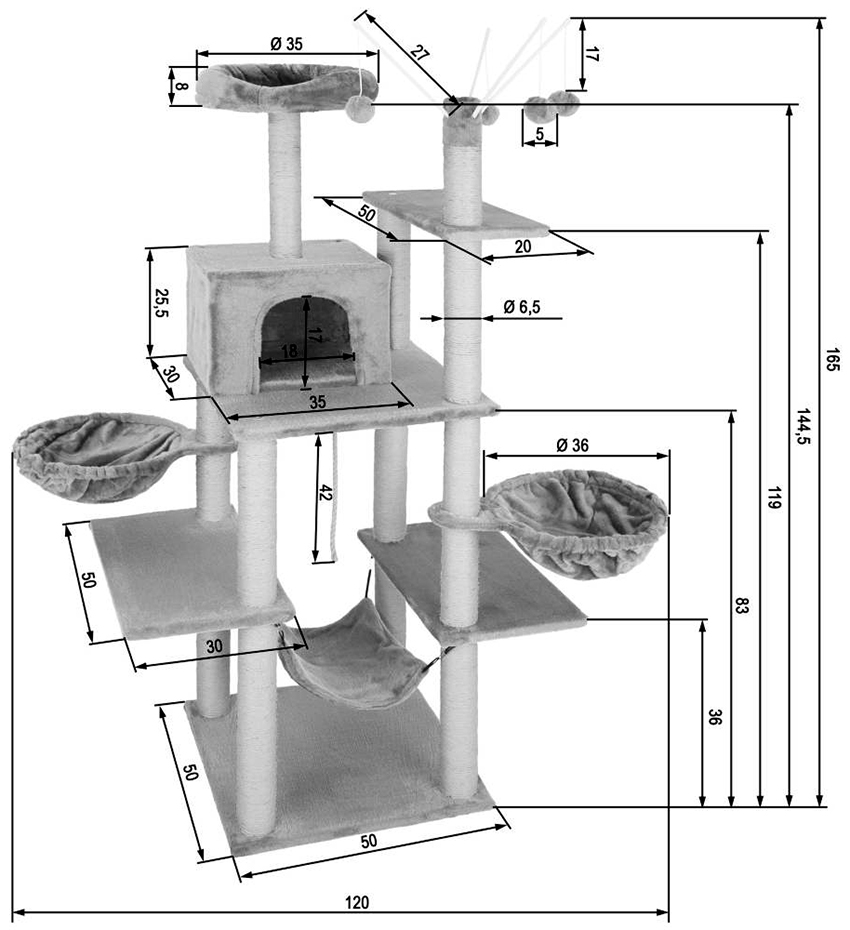 - Playroom. If you equip the structure with a scratching post, ribbons, tunnels or other play accessories, the pet will not lie down, but will strive for constant movement.