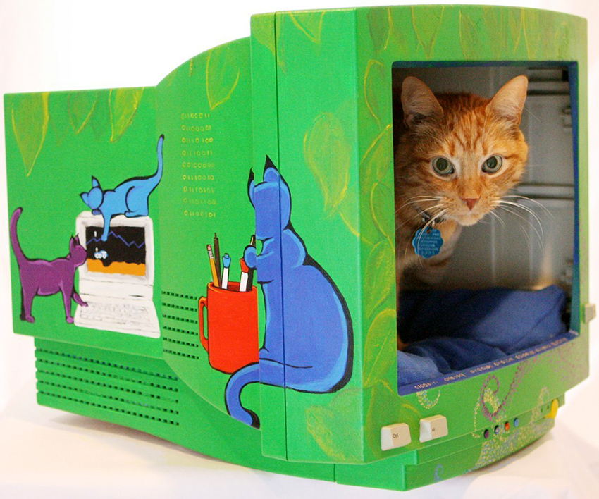 Useful advice! Paying attention to the photo of cat houses, you can see that, in addition to old bedside tables, chairs, stools, frames of old CRT TVs are used as a basis, in which inlets and small windows are cut for better ventilation.