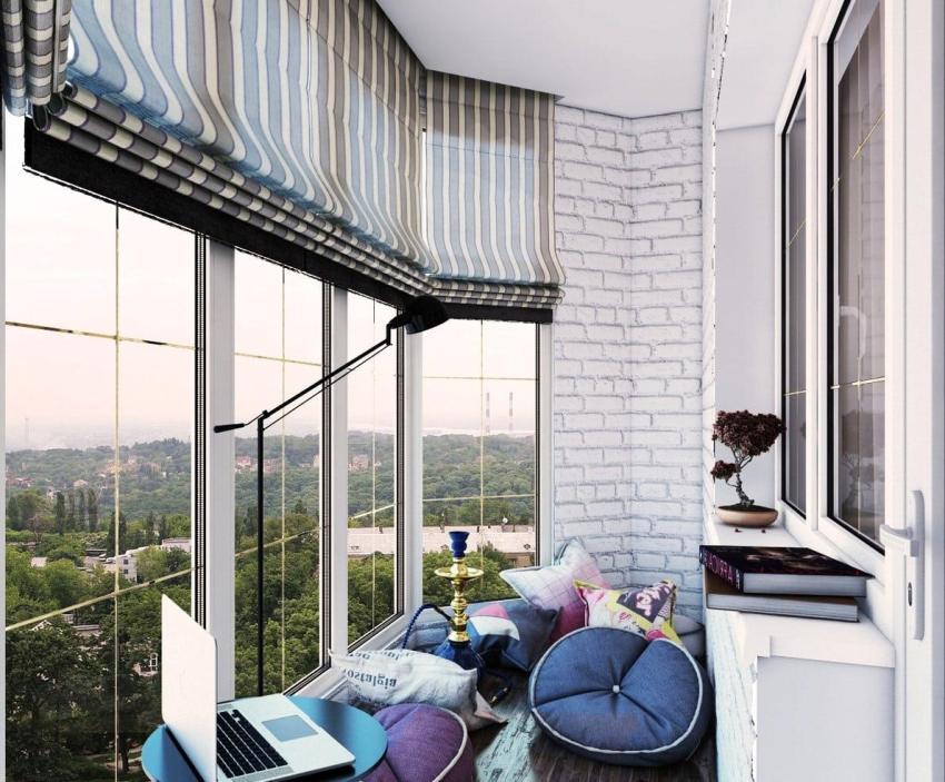 It is noteworthy that this type of design is considered a good idea for a loggia and for a small balcony in the conditions of old Khrushchev houses. If the work is done correctly, the appearance of the building does not deteriorate and the integrity of the structure is not violated, which ultimately guarantees the high reliability of such a device. In the photo of the designs of the small balconies, you can see how small gray rooms are transformed into attractive terraces with panoramic windows.