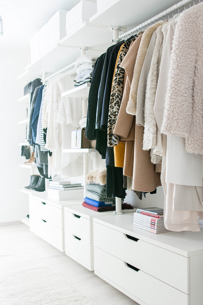 Useful advice! To make the dressing room as comfortable as possible, you can use a metal frame filling system, thanks to which you can adjust the height of shelves, baskets and trembles.