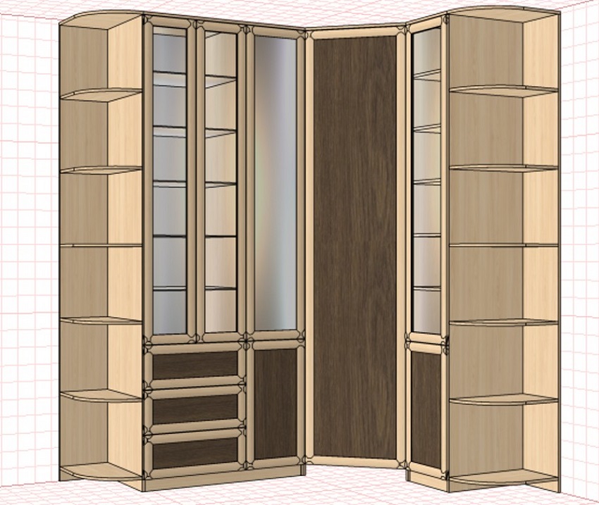 Corner wardrobes in the hallway can be fenced off using swing doors, accordion doors or light sliding partitions, however, it is worth considering the features of the hallway. If the room is rather modest, the swing option is absolutely inappropriate. Radial sliding systems look spectacular, the filling of which is matched in unison with the general interior.