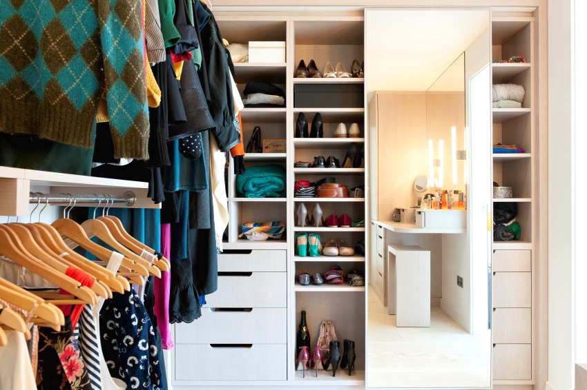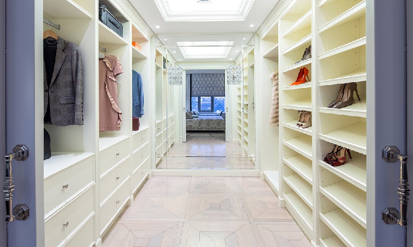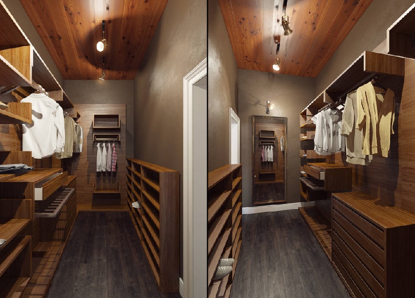 If initially there is no storage room in the layout of the apartment, the dressing room can be arranged anywhere.It can be a combination of a dressing room with a bedroom, an entrance hall, a hall, a nursery and other rooms. Experts recommend allocating several zones for storage systems, for example, in the bedroom and hallway, if possible. In an ordinary Khrushchev, a place for a dressing room is determined at the redevelopment stage, which is preliminarily agreed with the relevant authorities.