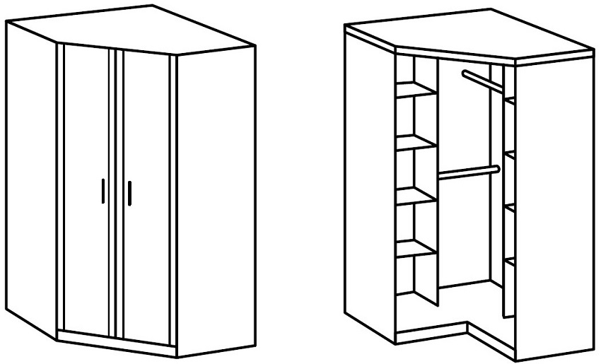 The exclusivity of the corner layout lies in the fact that under the dressing room you can use places that are usually not used in any way and are difficult to access. For example, it can be a corner where doors or windows are located in the walls that form it at a short distance from the center of the corner. Such a space is usually empty, so taking this area under a corner dressing room is the most successful and practical option.