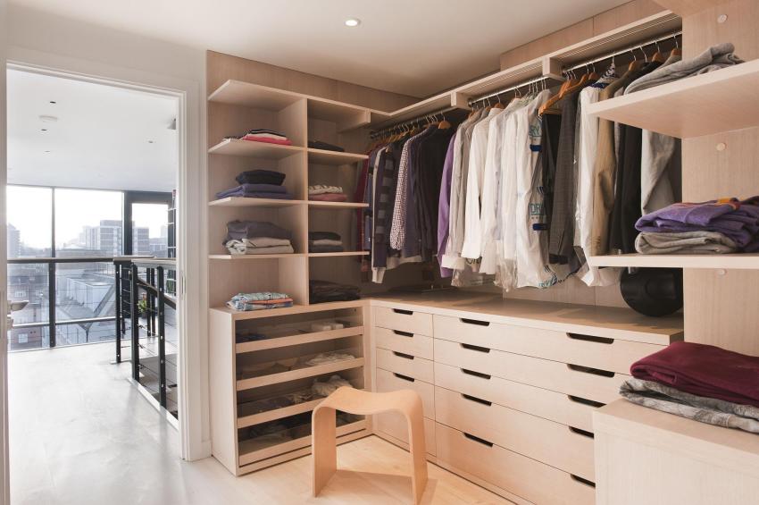 Useful advice! If you have a project with drawings and diagrams of the internal filling of the dressing room, it is not difficult to assemble a storage system.