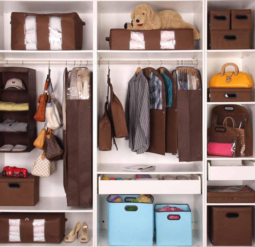 - baskets, boxes - mobile containers for storing linen, clothes and shoes, small household items. Quite convenient components, but if there are a lot of them, it is recommended to sign each box in order to further facilitate the search;