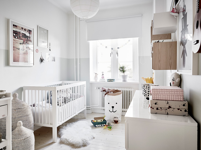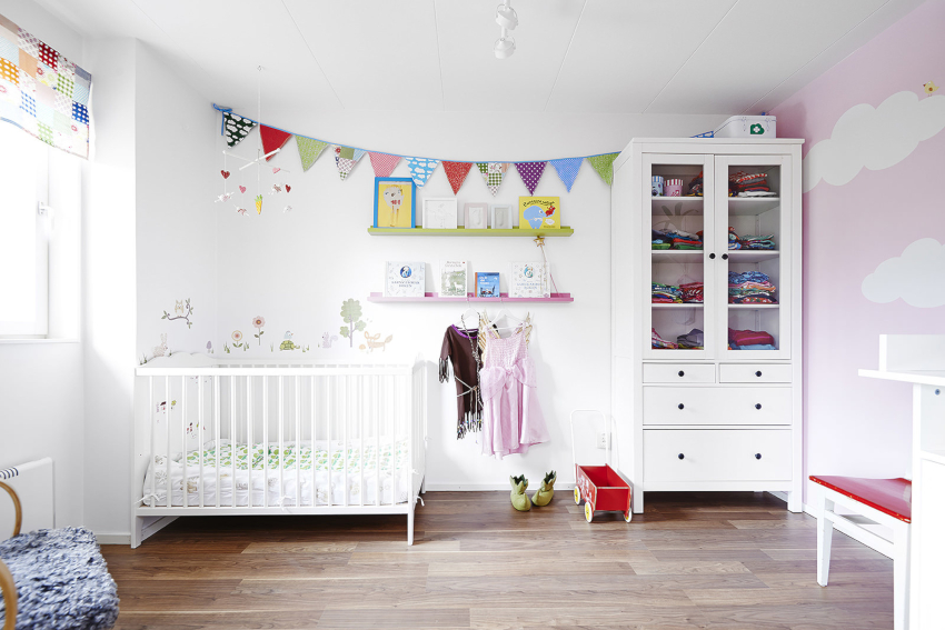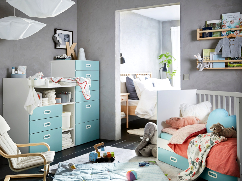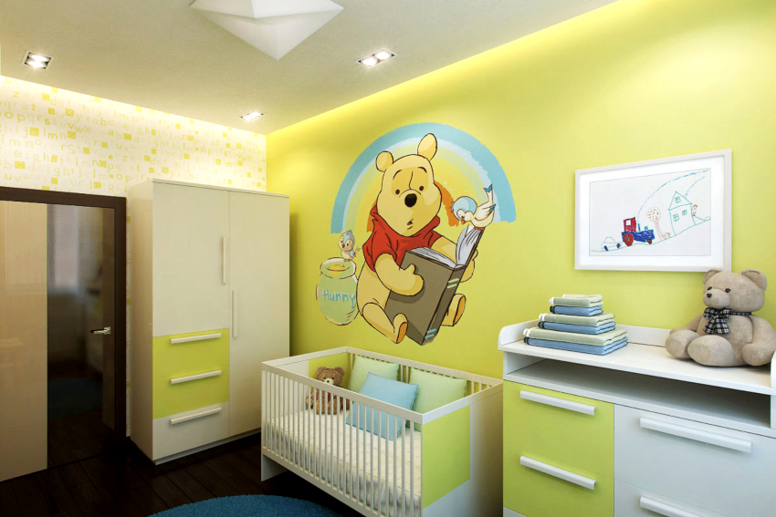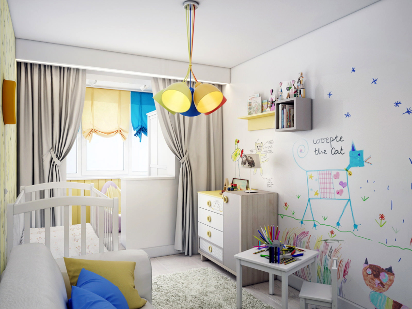 For a child under one year old, the room should have a minimum set of furniture: a crib, a changing table, a wardrobe. It is better when all things for the child are located near the changing table, where the child will be very often. The best option is the choice of a transforming bed that a child can use up to 7 years old or even longer.