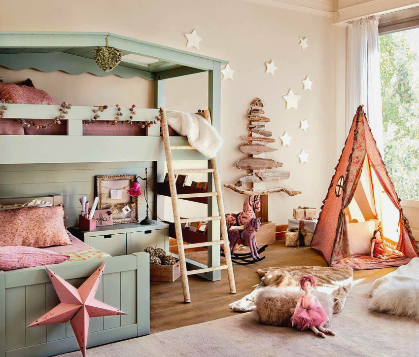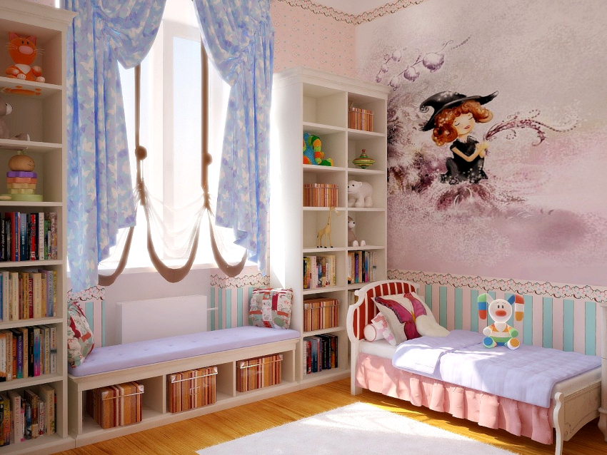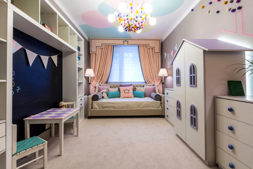 The interior of a children's room for girls is often created using pastel shades, such as:
