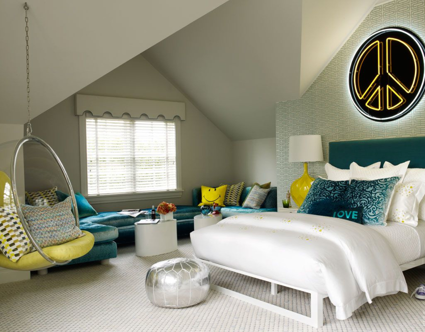 Loft. Classic teenage interior with industrial touches. Assumes the presence of brick walls and purposely shabby surfaces. It is good to leave the ceiling beams exposed and use a large number of artificial light sources. It is easy to show individuality in such an interior.