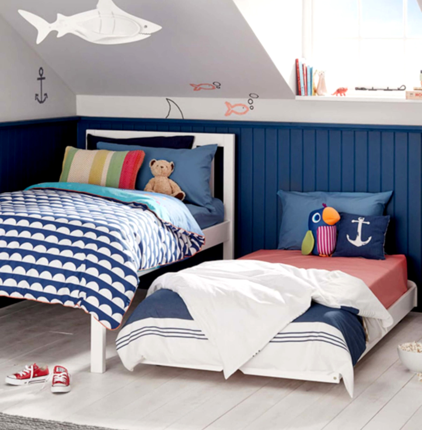 If we are talking about arranging a children's room for two boys, everyone needs to allocate their own corner, using space zoning techniques. It is important that every child has a place to work and to store clothes.