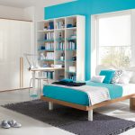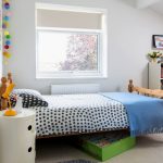 Scandinavian.The direction prefers the use of cold colors, therefore it is more suitable for decorating a room with sufficient natural light. A white parquet board looks beautiful on the floor, it is better to cover the windows with blue roller blinds. They complement the interior with bright textiles and a small rug by the bed.