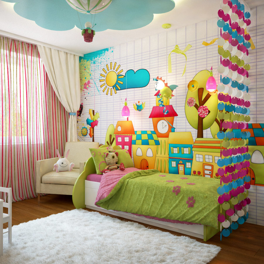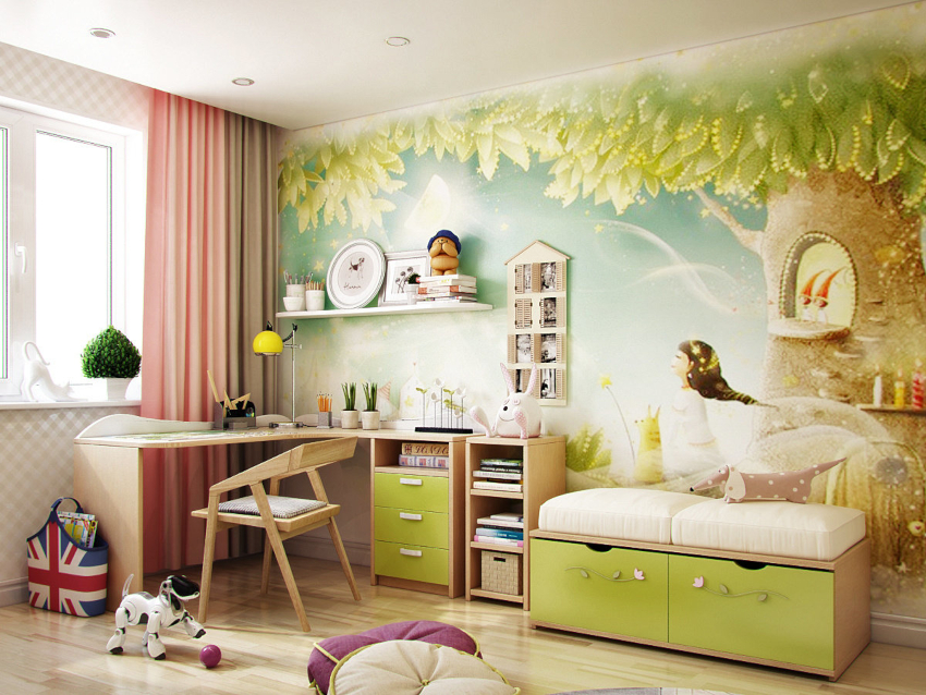 Children's room interior: wall and floor finishing options