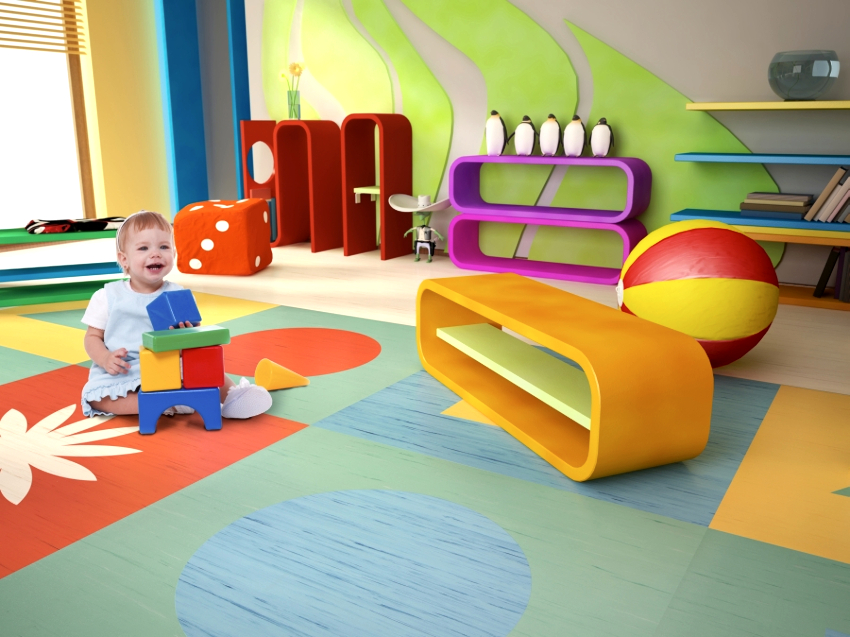 Since the child spends most of his time on the floor playing games, the finishing of this surface must be approached carefully. It is important that the floor covering is stable, preferably made of natural material, easy to clean, not slippery and moisture resistant. More often used for floor finishing: