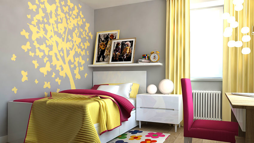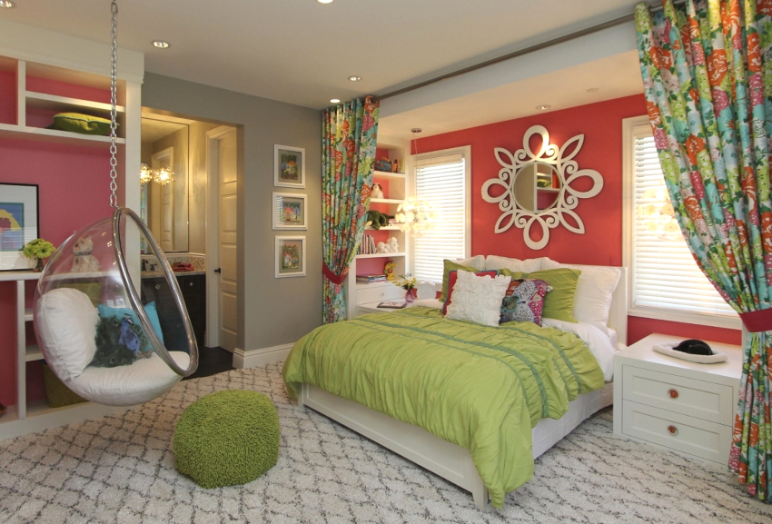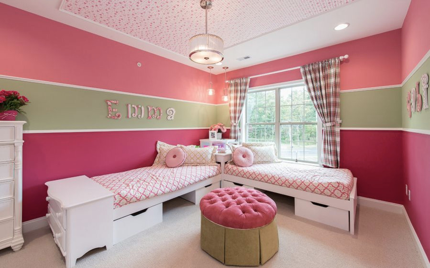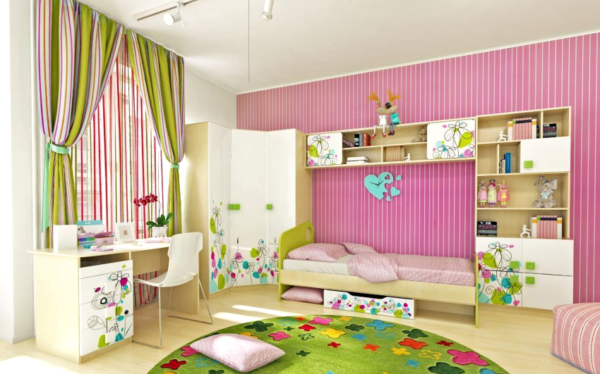 As adolescents, girls are attracted to various actors and bands, so most likely the walls will be used to hang posters, posters and posters. It should also be borne in mind that they love to collect girlfriends, arrange get-togethers and pajama parties, and therefore they need a personal territory.