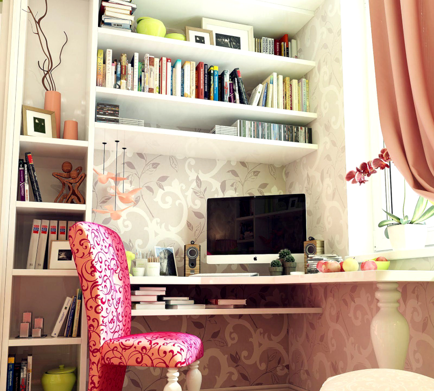 Unlike a little girl, a teenage girl has a bed in a secondary position. Here, more attention should be paid to the organization of the working area, where a writing desk and a large illuminated mirror are located. If the room is small, it is better to choose the folding bed option or purchase a loft bed that allows you to maximize the space. It is important for a girl to have a large closet in which she will store clothes. It is recommended that it be equipped with a large number of drawers.