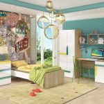 The interior design of a children's room for a student is created taking into account his hobbies. For this, themed wallpapers and the necessary accessories are suitable. Favorite items include hanging chairswhere they play or read a book. At this age, you can fully involve the child in the creation of an individual interior.