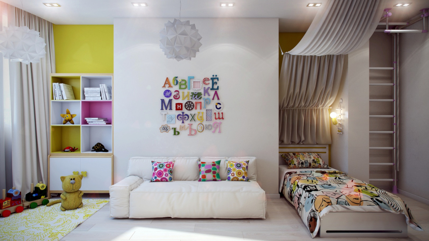 Often housing problems do not allow the child to be allocated a separate room. However, even in this case, it is advised to resort to space zoning techniques in order to organize at least a small isolated corner where the child can retire, which is especially important for children over 7 years old.