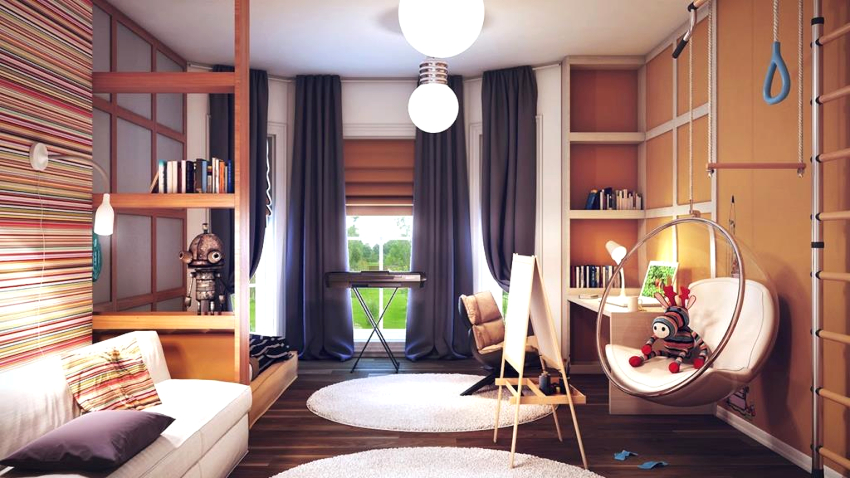 When creating the interior of a room for a teenage boy (and younger children), it is required to create a safe and cozy space, since boys are very mobile by temperament and prefer active games. Therefore, it is important that the room has as much space as possible and as few sharp corners as possible. It is necessary to take into account the peculiarities of the situation, depending on the age of the child.
