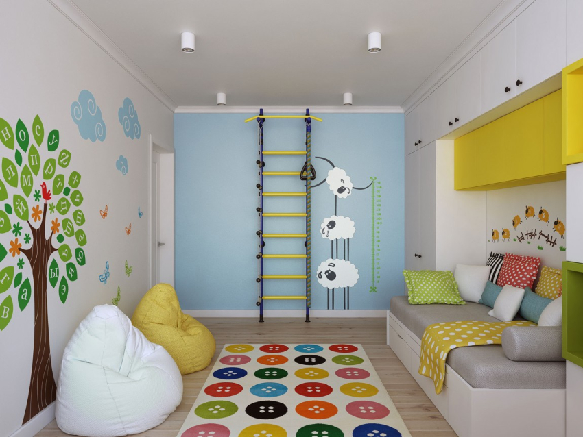 Useful advice! It is recommended to place a Swedish wall with rings and a rope in the room, because modern children spend too much time with electronic gadgets, forgetting about physical activity.