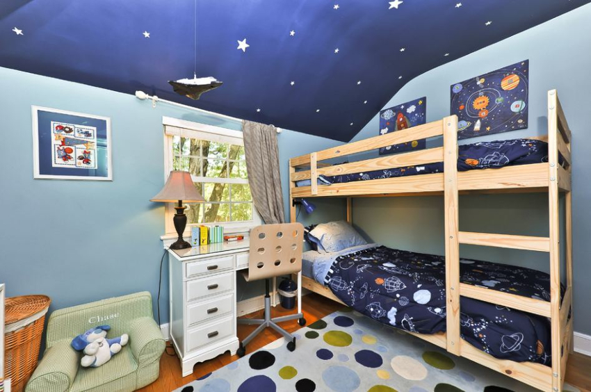 The child must show imagination and express personal ideas. For example, boys like to use sports, military, space, music or computer themes to organize their room. If the boy is fond of dancing or traveling, you can fill the interior with characteristic elements. In order to understand a child's hobbies, you need to pay attention to what he likes to do.