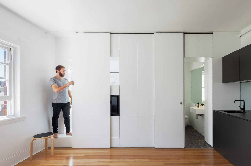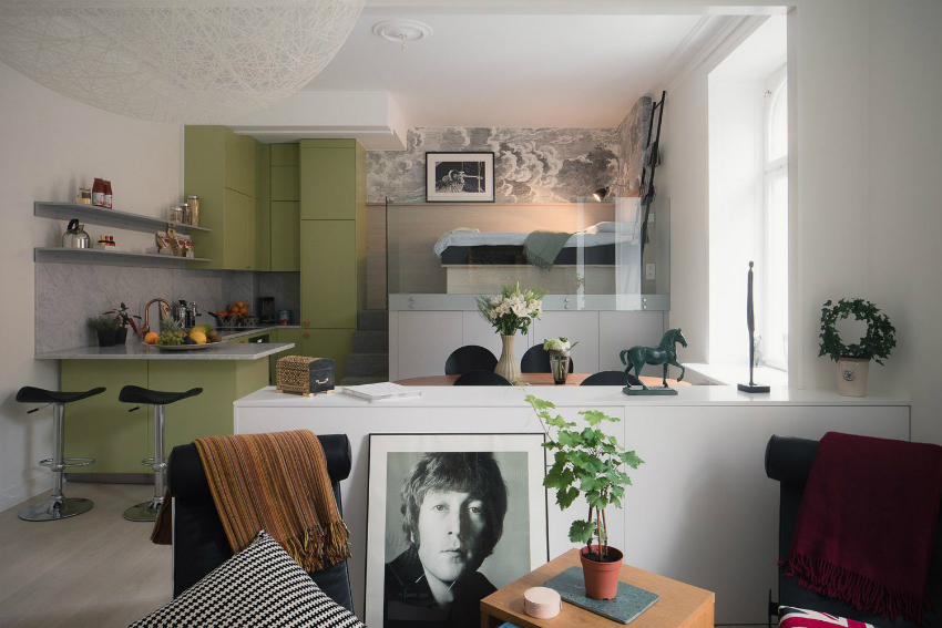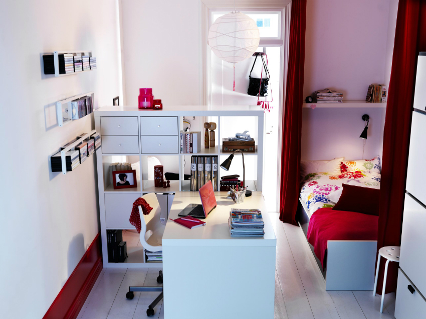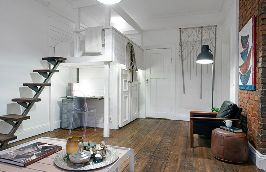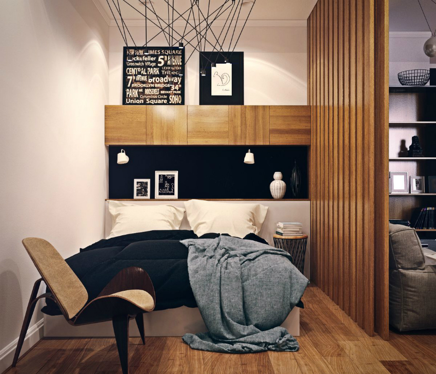 Useful advice! In an ordinary apartment, you can use a two-level arrangement of furniture, placing the sleeping area on the second tier, and the storage system on the first.