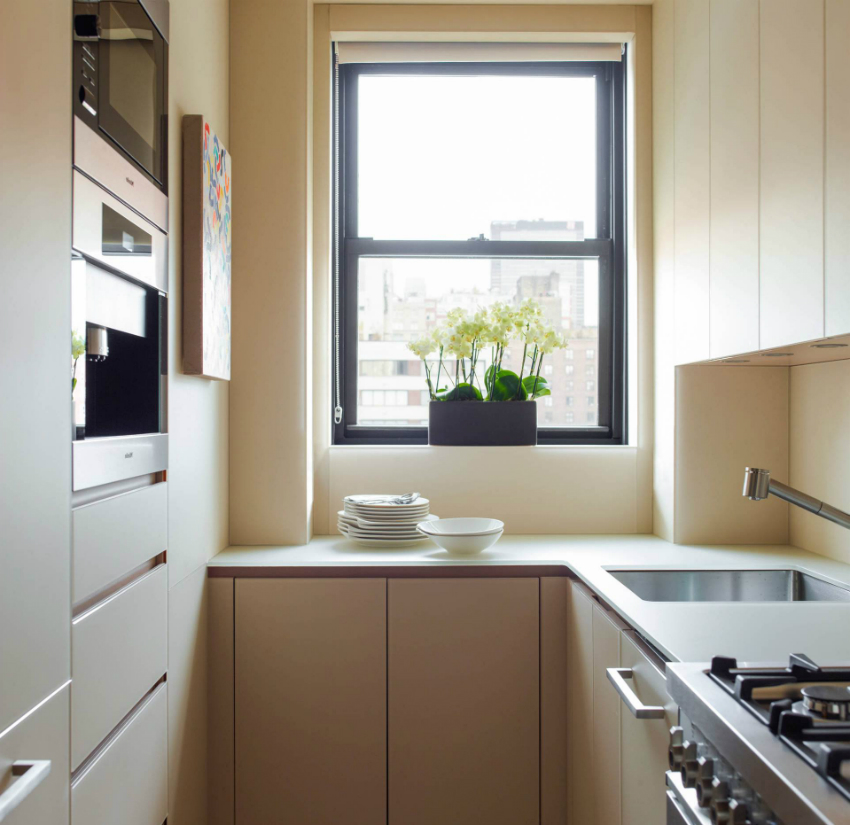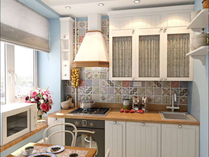 Built-in appliances will help save space for a small kitchens in Khrushchev