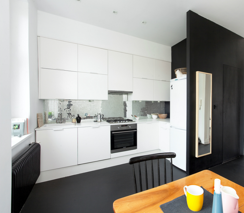 Useful advice! Glossy tiles can be used to decorate the walls of the entire room, or just the working wall.