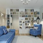 At the first stage, the purpose of the living room should be determined, which can be divided into separate zones, in the case of the design of a studio apartment. You can visually divide the common space into separate functional areas by changing the level of the floor or ceiling, lighting elements, using open shelving and glass partitions.Such design tricks, brought to life, can be seen in the photo of the interior design of the hall in the studio apartment. The kitchen and living area can be divided using bar counter.