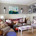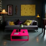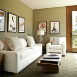 To create additional warmth and comfort near the sofa, you should lay a plain light carpet. You can add liveliness and cheerfulness to the room with the help of bright decorative pillows, colorful paintings, family photos, noble fabric floor lamps and floor vases of a conservative shape.