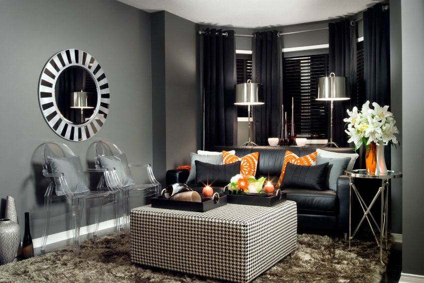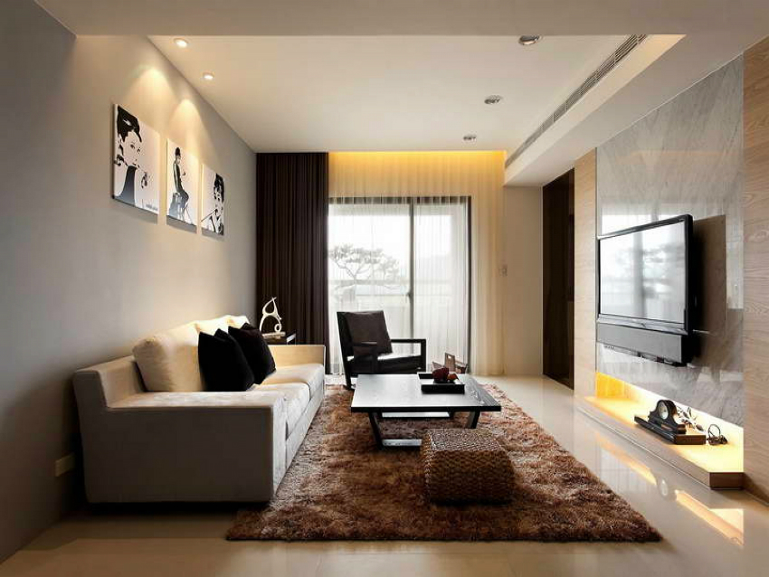 Living room furniture should match the flooring perfectly in color and style. Modern, laconic design offers crisp lines and neutral calm tones that help you relax and unwind. Motley bright colors, gilding, stucco - inappropriate in a simple, restrained interior.