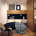 Small rooms should be decorated in light colors. An exception may be the use of dark shades on one of the accent walls. Such a design secret will add additional depth to the room and increase the free space, as can be seen in the photo of the interior of a one-room apartment of 20 sq.m.