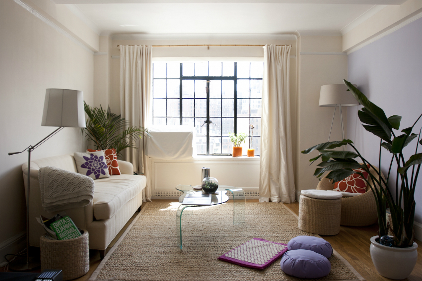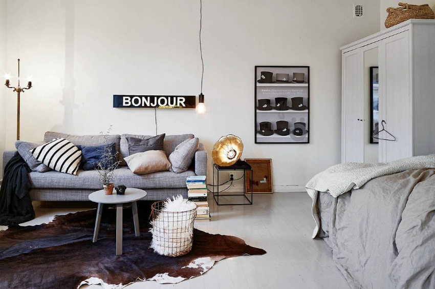 Do not try to clutter up a small area of the apartment with massive, heavy carpets. For comfort, a small floor covering will be enough near the bed or seating area.