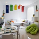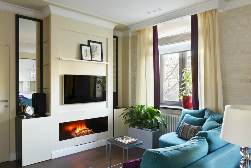 Useful advice! Do not use a color palette to paint the ceiling. This will make the room lower and darker, as the photos of the interiors of a small one-room apartment prove.