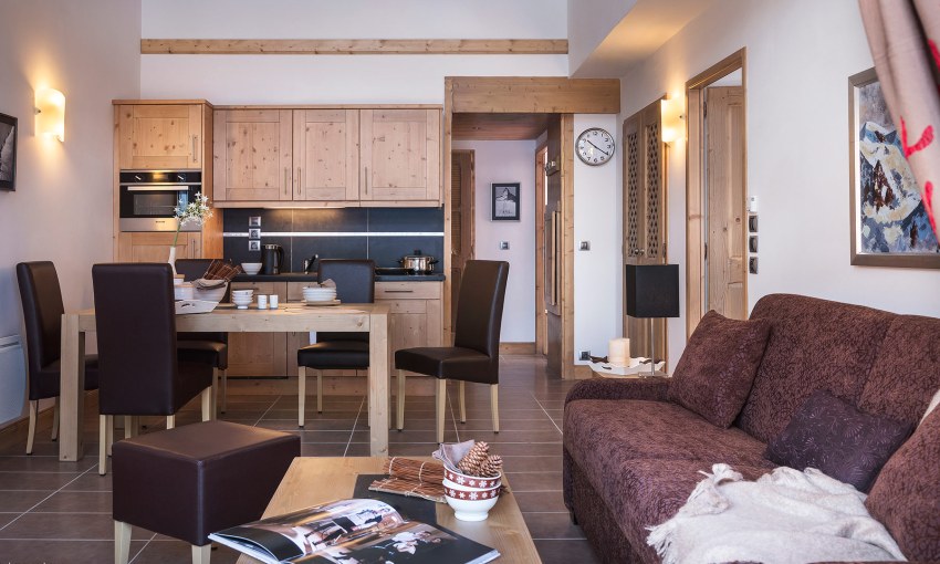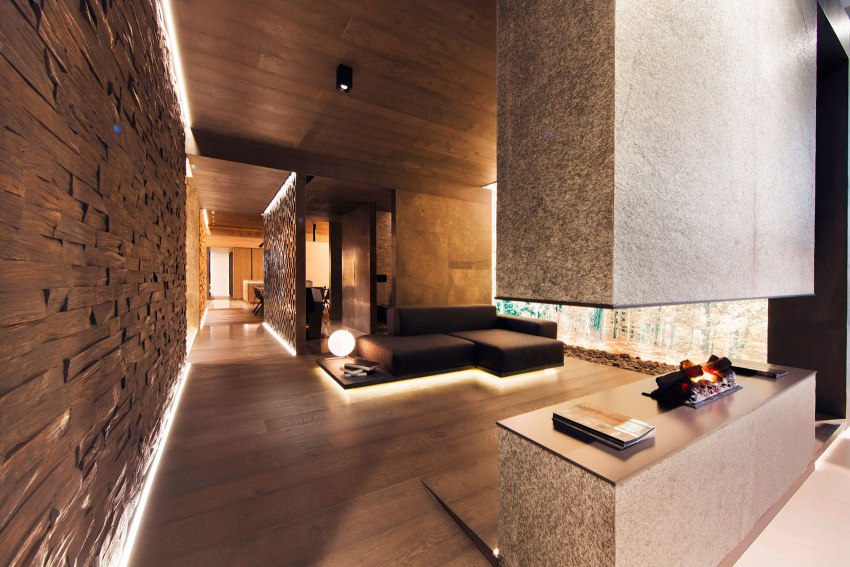 In modern design, pride of place is given to the use of natural materials such as wood, bamboo, cork, stone. This is clearly reflected in the photos of the interiors of a chalet-style apartment, where wood is ideally combined with natural stone masonry. However, the use of laminate, linoleum, vinyl wallpaper and other synthetic coatings, which are much cheaper and more affordable in the construction market, is not excluded.