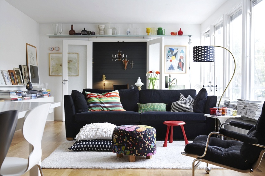 To ensure the maximum flow of natural light, windows in rooms should be as open as possible. You should not hang them with thick heavy curtains and set a lot of indoor flowers on the windowsills. Photos of the Scandinavian-style apartment interiors clearly demonstrate various design solutions to provide a room with a sufficient flow of natural light.