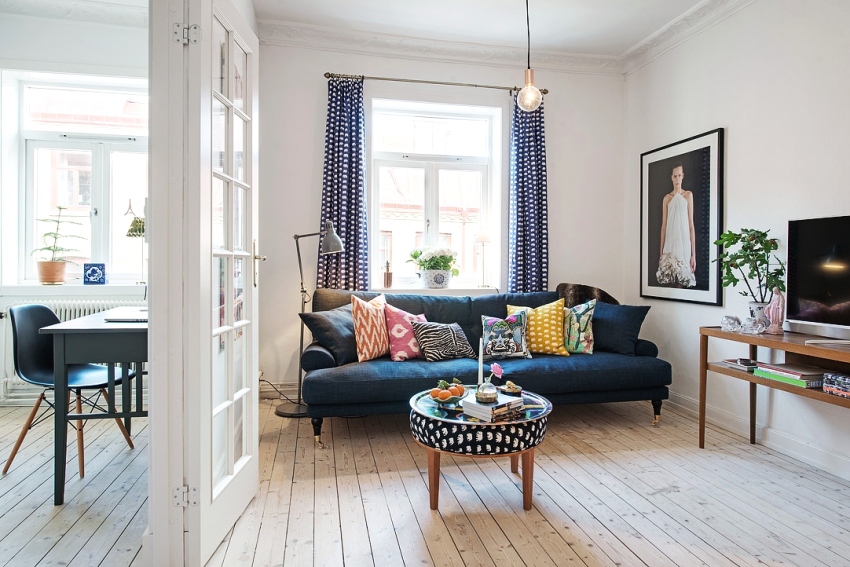 For avant-garde, glamor and fusion, for example, bold experiments with rich, vibrant colors are suitable.While for the traditional classical style, restrained light colors are appropriate, contrasting with darker ones. However, there is no place for bright, defiant, juicy shades. Photos of interiors of small apartments in scandinavian style the use of virgin white color, which is a characteristic feature of this direction, is brought to the fore.