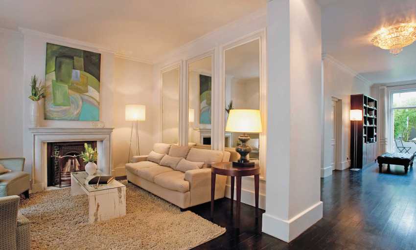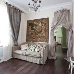 This style is characterized by the use of vintage sofas and armchairs, artificially aged cabinets, antique furniture, large mirrors of an unusual shape, bronze candlesticks, and art canvases placed on the walls of the room. Photos of classic apartment interiors clearly demonstrate this.