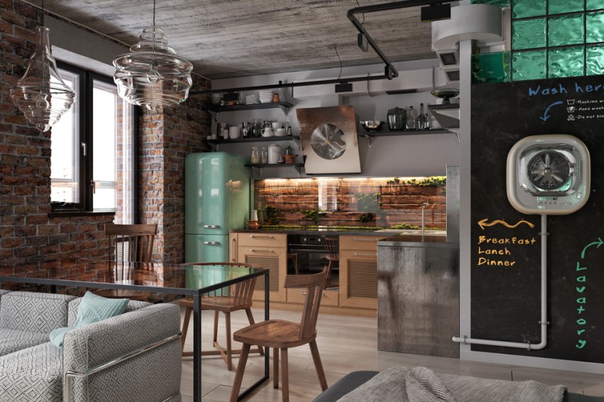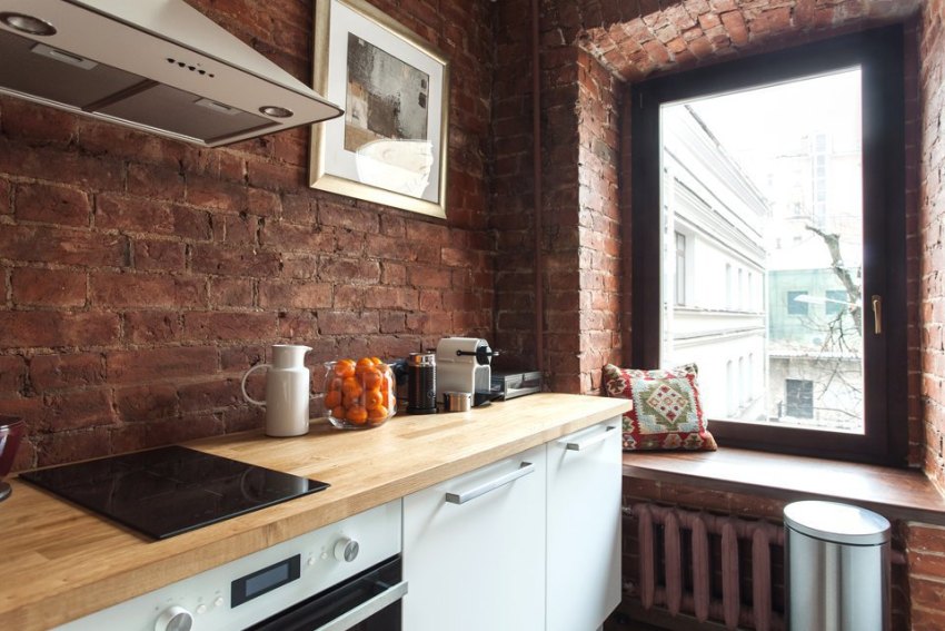The kitchen in the apartment is decorated in the style loft