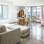 Self-leveling floors are used for floor finishing. The ceiling is made of stretch, silver or white. Furniture should be versatile, mobile, trendy and modern.