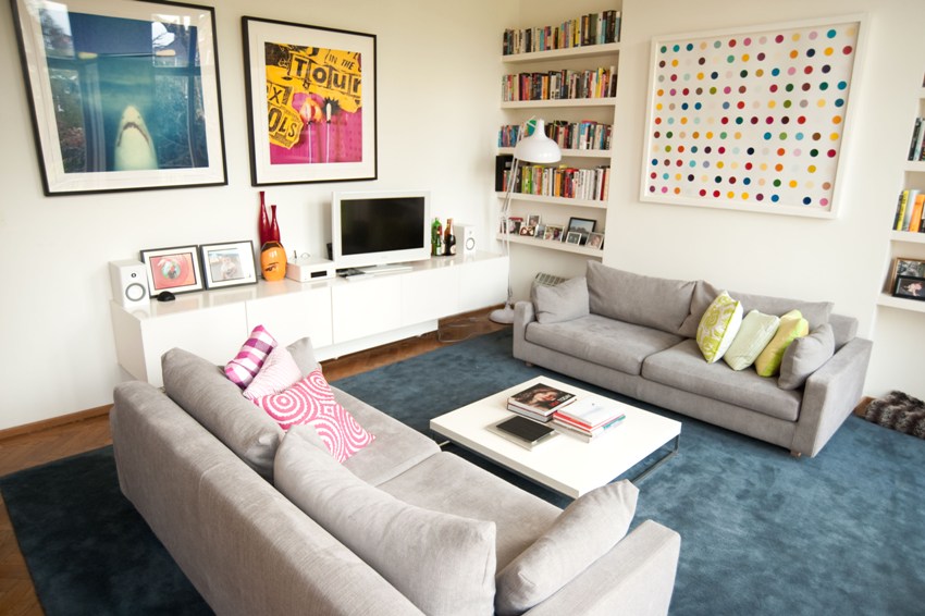 Furniture should not be placed around the perimeter. Using an island setting, you can interestingly zone the space, achieving maximum functionality and comfort.