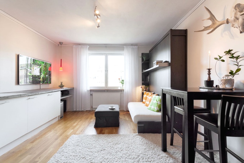 In large metropolitan areas, there are often studio apartments, mini-apartments, where the entire living space is represented by one room with competent zoning of functional segments. Such apartments are in demand among young people and for renting out to students.
