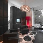 The design of the room is made using elements of unusual geometry, unconventional accessories, made in rich colors. Metal, plastic, glass are widely used here.
