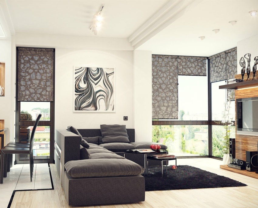 Photos of the interiors of one-room apartments in a modern style clearly demonstrate such solutions.