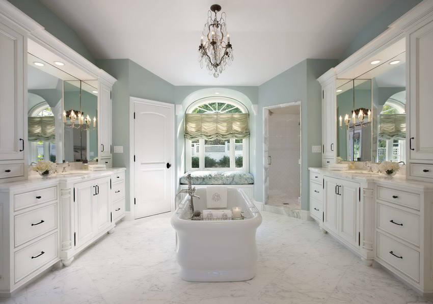 Greek style is one of the oldest classics, characterized by a light range of colors and lack of luxury. Ceramic tiles, marble and light plaster are skillfully used in the decoration. In this case, all elements have strict geometric shapes and clear symmetry of arrangement.