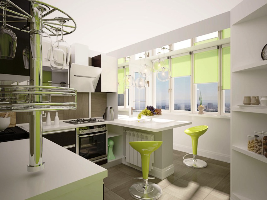 The kitchen on the balcony is sometimes the only way to expand the space of a small apartment. By increasing the size of the room, you can experiment with the interior in the kitchen. It becomes possible to supply more necessary furniture and acquire small household appliances, such as a toaster, a coffee maker, a bread maker, for which there was not enough storage space before.