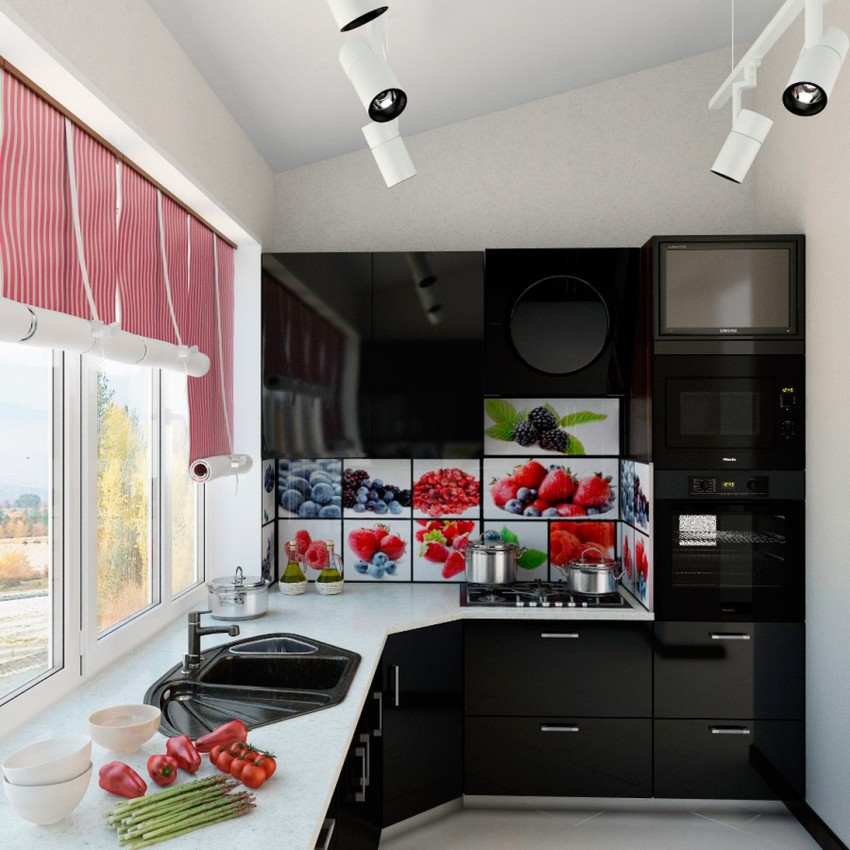 In small kitchens, preference should be given to built-in appliances and modular furniture. So, in a small cabinet-case, you can compactly place a small refrigerator and microwave on top of each other. If we consider that now you can buy a microwave oven with an oven function, then 2 problems are solved at once.