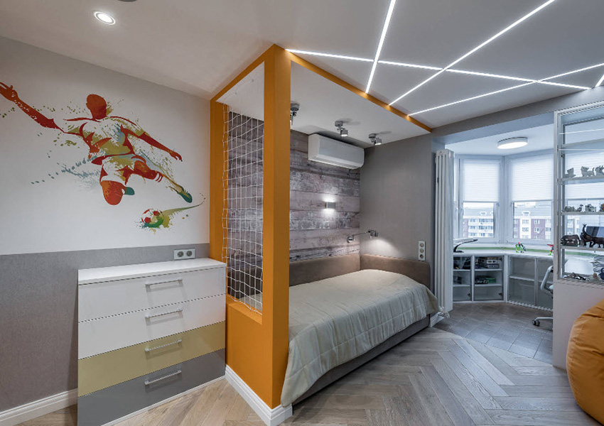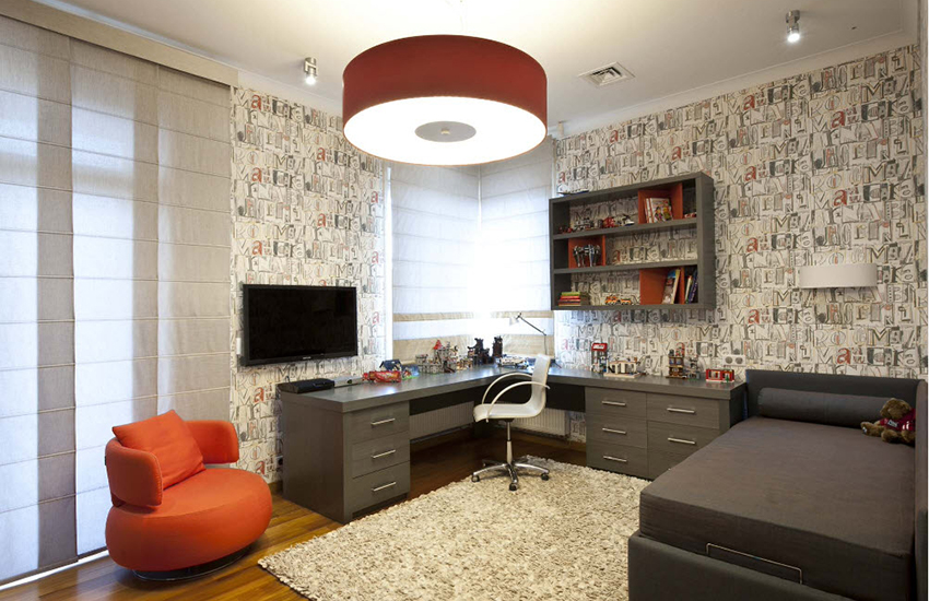 Most often, there is a minimum amount of decorative elements in a teen's room. It is important for the boy to independently think over the choice of wallpaper for his bedroom and indicate how he sees the design of the room as a whole: