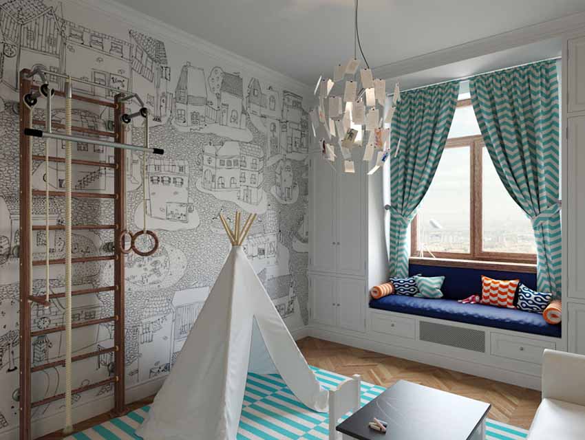 What can be the design of wallpaper in a children's room for a boy