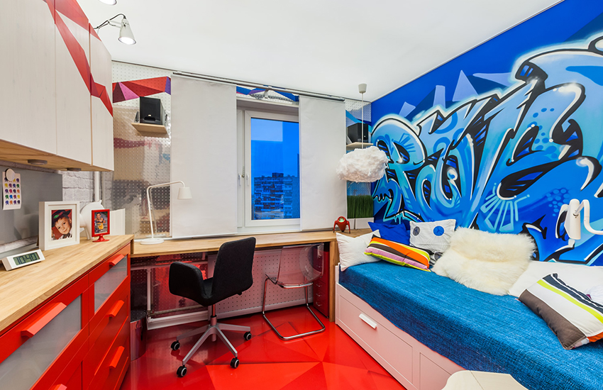 Street art, or graffiti, which once originated in disadvantaged American areas, is now actively spreading around the world. This style has happily moved from city blocks to people's homes. Graffiti will be an excellent design option for photo wallpaper for a teenage boy.