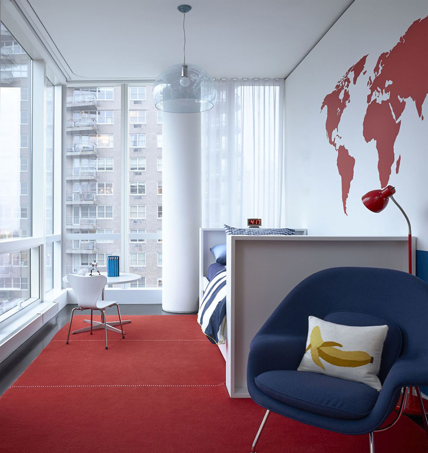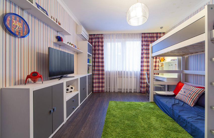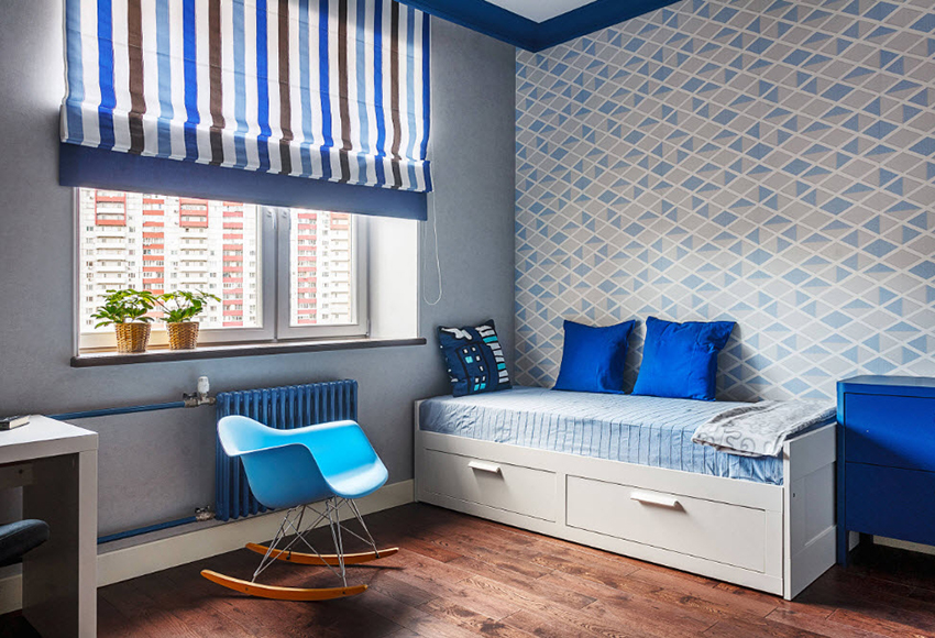 This rule applies not only to the design of a child's room for a boy, a teenager will also not feel comfortable in a patterned room.